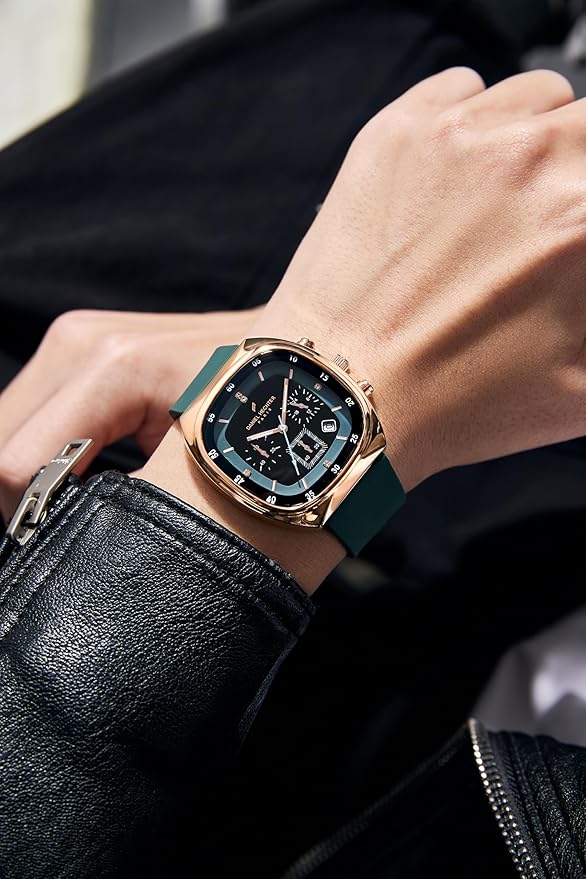 - Multifunctional Features: Chronograph with three subdials for stopwatch functionality and date display window.
